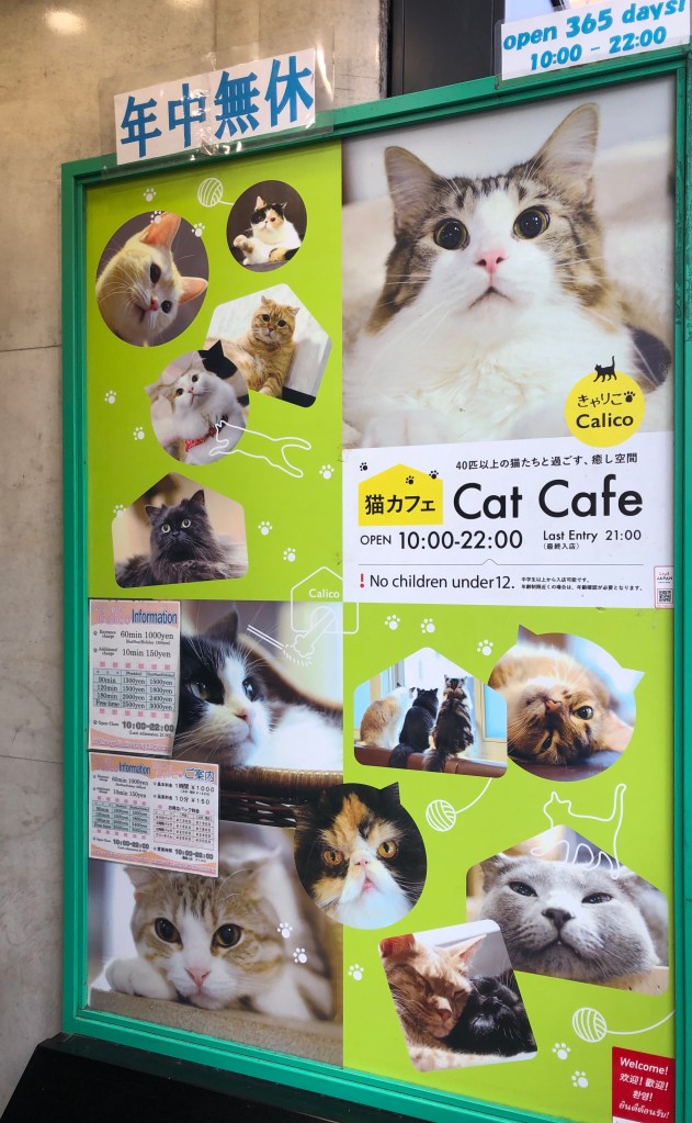 Ze draaide zich om en liep recht een kattencafé binnen, waar ze per ongeluk 900 yen betaalde om een kat genaamd Mochi-sama te aaien terwijl een ober in een maïskolfkostuum haar een smoothie bracht met glimwormverlichting.